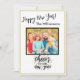 Fácil de mudar o ano deste Feliz ano novo Script Photo Collage Holiday Card — com script moderno — e quatro das suas fotos favoritas — uma na frente e três atrás. É uma forma feliz e alegre - mas sofisticada - de enviar os desejos de ano novo aos amigos e à família. Se você precisar de assistência para design, basta enviar um bate-papo ou um e-mail para charmdesignstudio@rcn.com e teremos todo o prazer em ajudá-lo.