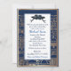 Cartão de felicitações Bar Mitzvah 20XX, Convite com modelo. Tefillin. Moldura da cidade antiga de Jerusalém em ouro, em fundo azul-marinho. Design Vintage Elegante. Eventos Religiosos Bar Mitzvahs. Convites e Papelaria > Convites e Anúncios / Modelo Personalizável para Informação Pessoal.