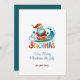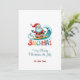 Beachmas felizes para um Natal muito feliz no convite de festas de julho com Papais noeis de surfe e tipografia retrô colorida.