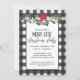 Feliz de Xadrez de Buffalo preto e Branco Pequeno Convite de festas de Natal com florais de fazendas, luzes de cordas estreladas e bonito letras modernas. Perfeito para a sua Feliz Festa de Natal! Será parte de uma coleção e estará disponível para comemorações virtuais de Natal. Se precisar de assistência para personalizar o seu Convite de festas de Natal, não hesite em contactar por correio eletrônico. primdesigner@gmail.com.