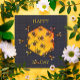 Abelhas de mel com hexágono amarelo alaranjado e fundo preto. Feliz texto de aniversário e nomes para personalizar. Criação elegante e natural para quem gosta de abelhas. Feliz Dia da Abelha!