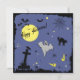 Ilustração feliz do Dia das Bruxas com diferentes símbolos do Dia das Bruxas sobre fundo azul em quadro preto verde