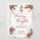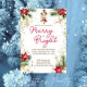 Lanterna clássica do janto natalino com pinças de vela pinheiros poinsetos vermelhos ouro flocos de neve e borrifados de neve pinheiros aquarela modelo convite instantâneo