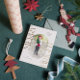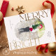 Cartão de saudação de Natal, foto personalizada com quadro cor-de-rosa pincelado e Feliz e tipografia de ouro elegante brilhante. Personalize facilmente este cartão substituindo as fotos pelo seu próprio e personalizando a mensagem de texto e o nome da família.