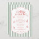 Os convites para festas de festas de Natal corporativas e Felizes elegantes apresentam simples elementos vermelhos de Natal em um fundo verde e branco listrado com o texto "Feliz e Brilho" em tipografia elegante de scripts de caligrafia vermelha. Na moda, tendências e chic para o seu Partido de Feriados corporativo. Criado pelo Evco Studio www.zazzle.com/store/evcostudio