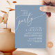 Anuncie e partilhe a sua alegria para sempre em estilo com o nosso moderno design romântico de celebração de elopemento de celebração de elopementos de verão empoeirado e romântico (Felizmente para sempre após a festa). É ideal para casais que decidiram celebrar o seu melhor dia. Com seu design sofisticado, mas lúdico, este convite certamente define o tom de um evento inesquecível. O convite apresenta um tema de design de roteiro moderno e minimalista, acrescentando um toque de elegância do eterno à sua celebração. Projetado por TeeshaDerrick
