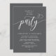 Marque o começo de sua eternidade com elegância usando nossa cinza negra contemporânea, chamada de celebração do elopemento de casamento, "Feliz Sempre Depois da Festa". Perfeito para os casais estendendo sua alegre ocasião, este convite exude sofisticação com uma sugestão de brincadeira, definindo o palco para um evento memorável. Adorado com um tema design de roteiro moderno de eterno, ele adiciona um toque de encanto refinado às suas festividades. Feito por TeeshaDerrick, este convite promete capturar maravilhosamente sua história de amor.