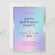 Feliz modelo de 25 de convite de aniversário com uma simples fronteira prateada e ombre rosa e azul.