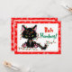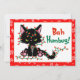 Este cartão de cartões de natal engraçado apresenta um gato preto rabugento enredado em luzes de Natal e a imagem de texto "Bah Humbug" em um fundo vermelho e branco floco de neve. Perfeito para seu senso de humor de feriado.