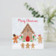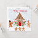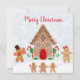 Desejamos-lhe um excelente de férias! Um convite de pão de Natal feliz para a sua festa de Natal, decorado com uma casa de pão de gengibre, pão de gengibre e biscoitos. Flocos de neve brancos em um pano de fundo branco, gengibres, e uma casa de gengibre cheia de doces e doces.