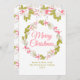 Feliz Festa de Natal em tons de Natal tênues de vermelho e verde numa carta plana com padrão correspondente no verso. Ilustrações desenhadas à mão de flores, verde e bagas acabadas com tintas aquáticas. Enquadrado em cima e em baixo com a mesma arte. Um belo cartão alegre de Natal com uma aparência limpa e nítida. Na parte inferior você pode personalizar com o nome ou nomes da família. "Feliz Natal" Pode ser personalizado conforme necessário. Criada por "Florida Girl"