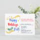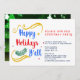 Convite com Feliz Férias Y'all, Design de Natal Engraçado. A parte de trás do convite de Natal tem uma cena verde de árvore de inverno. Ver todas as lojas bit.ly/SandyspiderStores