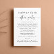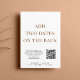 Na moda ou anúncio privado de casamento e recepção de casamento ou convite de festas de celebração. Na frente, "Felizmente, nunca depois da festa" é escrito em uma mistura de simples tipografia e um roteiro elegante com supressões, e você pode personalizar sua mensagem e convite e adicionar seus nomes em um roteiro semelhante a assinatura. No verso, insira o endereço de URL do seu site de casamento para criar um Código QR para os convidados pesquisarem todos os detalhes e para RSVP on-line e adicionar seus primeiros nomes e datas de casamento e recepção.