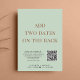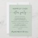 Na moda ou anúncio de casamento privado e convite de festas de recepção ou celebração. Na frente, "Felizmente, nunca depois da festa" é escrito em uma mistura de simples tipografia e um roteiro elegante com supressões; personalize sua mensagem e convite e adicione seus nomes em um roteiro semelhante a assinatura. No verso, insira o endereço de URL do seu site de casamento para criar um Código QR para os convidados pesquisarem todos os detalhes e para RSVP on-line e adicionar seus primeiros nomes e datas de casamento e recepção.