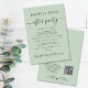 O elopemento verde do sábio ou anúncio privado de casamento e recepção de casamento ou convite de festas de celebração. "Felizmente, sempre depois da festa" é escrito em uma mistura de simples tipografia e uma escrita elegante com pântanos. Personalize seu anúncio de casamento e seu convite de recepção e adicione seus nomes em um script semelhante a assinatura. No verso, insira o endereço de URL do seu site de casamento para criar um Código QR para os convidados pesquisarem todos os detalhes e para RSVP on-line.