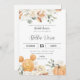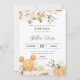 Este chá de panela apresenta flores de cacholeira pintadas manualmente, em lindas toneladas mudas. As pop de cor laranja encontram-se nas pequenas abóboras colocadas no fundo do convite.
