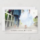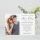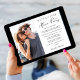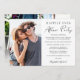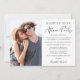 Elemento químico ou pequeno anúncio de casamento e recepção de casamento ou convite de festas de celebração. A frente apresenta sua foto, "Feliz Festa Depois" em uma mistura de simples tipografia e um roteiro moderno, seu anúncio personalizado de casamento e convite de recepção, e seus nomes em um roteiro semelhante a assinatura. O verso mostra uma foto adicional, seus nomes e data do casamento.