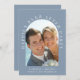 Elegante azul empoeirado ou anúncio privado de casamento e convite de recepção. A frente apresenta sua foto em um quadro arquitetado e "Feliz Festa Depois" em uma elegante tipografia branca. Sob sua foto, adicione seus nomes, data do casamento e local. Ao contrário, personalize seu anúncio e convite de celebração em mais detalhes e adicione seus nomes em um script semelhante a assinatura.