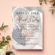Elemento moderno ou anúncio privado de casamento e convite de recepção. Seu anúncio de casamento e convite sobrepõe sua foto do dia do casamento, e "Feliz Festa Nunca Depois" está escrito em uma mistura de simples tipografia e um roteiro contemporâneo.