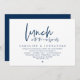 Marque o começo de sua eternidade com elegância usando nosso maravilhoso e contemporâneo Marinho azul de classe azul com tema de elopemento de casamento, "Almoço com os recém-casados". Perfeito para os casais estendendo sua alegre ocasião, este convite exude sofisticação com uma sugestão de brincadeira, definindo o palco para um evento memorável. Adorado com um tema design de roteiro moderno de eterno, ele adiciona um toque de encanto refinado às suas festividades. Feito por TeeshaDerrick, este convite promete capturar maravilhosamente sua história de amor.