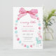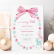 Este convite à chá de "Feliz de Natal Pequeno" apresenta um design festivo e delicado com uma paleta de cor pastel de pinks, blues e brancos. Um arco branco cor-de-água rosa no topo e uma borda de bolhas pastel semelhantes a Enfeites de natal enquadram a placa. Dois bebês veados adoram o canto inferior direito, acrescentando um toque doce e sazonal. A design combina maravilhosamente a alegria de Natal com uma vibração suave e acolhedora para um chá de menina.