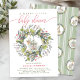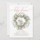 Celebre o seu pequeno a caminho com este charmoso convite de "Feliz Pequeno Chá de fraldas". A design apresenta uma coroa impermeável, pintada à mão, enfeitada com verde festivo, bagas e detalhes do bebê pendurado — incluindo um pacificador e ornamento carrossel — para um olhar confortável e elegante de férias. Personalize com seus detalhes de eventos e combine com artigos de papelaria do partido para uma comemoração coordenada.