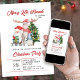 Feliz Pequeno Convite de aniversário de Natal - perfeito para crianças festas de aniversário de inverno. Este design festivo bonito apresenta Papais noeis e seus ajudantes com uma árvore de natal e trenó cheios de presentes. Você pode personalizar o título e toda a formulação do convite para se adequar a uma criança de qualquer idade.