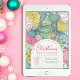 Esta Feliz de Chá de fraldas de Natal é a maneira perfeita de infundir seu chá de fraldas de Natal com vibrante alegria! Este convite, adorado com uma festiva carta rosa brilhante, perfeita para uma menina, dá o tom para uma celebração animada. O pano de fundo, uma pintura de aquarela original, mostra um jardim de inverno branco, rosa e verde, com uma árvore maravilhosamente decorada e uma pomba branca estrelada no topo, evocando o espírito de paz e alegria. Espalhe a magia do feriado com este convite encantador, e que comecem as festividades!