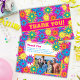 Design de diversão colorida com uma explosão de cores de potência floral. Personalize facilmente os textos e adicione uma foto do evento.