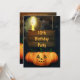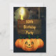 Convite de aniversário 10º e divertido para garotos e meninas. A frente deste cartão tem uma imagem impressa de 3/3 abóboras cor de laranja, uma com um rosto bonito, atrás de um conselho de sinal de madeira suspenso com uma vela acesa no topo. Ao fundo está a lua com teia de aranhas e morcegos voadores. O reverso tem o mesmo design, mas foi tornado muito maior para que você possa personalizar com seus detalhes de evento. Este é um cartão divertido para crianças aniversários com tema de Halloween. Se você precisar de assistência para personalizar seu produto, entre em contato comigo na minha loja e eu ficarei feliz em ajudar. NOTE: Todos os produtos do Zazzle têm imagens impressas em formato plano.