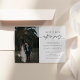 Celebre seu novo começo em estilo com este charmoso convite para recepções de casamento. A design combina lindamente uma foto sincera das recém-casadas com a frase "Feliz Nunca Depois da Festa" em um roteiro elegante, definindo o tom para uma celebração alegre e casual. Com um layout de eterno, a placa oferece espaço amplo para seus detalhes de recepção, incluindo informações sobre local, data e RSVP. O clássico fundo branco e a tipografia minimalista tornam este convite versátil, perfeito para qualquer tema ou localização, seja um celeiro rústico ou um local urbano chique. Use este cartão para anunciar sua celebração de casamento poste para a família e amigos, criando entusiasmo para a reunião. Como designer desta peça, o meu objetivo é ajudá-lo a comemorar o seu dia especial com um convite que se sinta tão único e memorável como a sua história de amor.