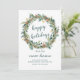 Convide os seus amigos e entes queridos a virem para a vossa nova casa este Natal com este simples, mas elegante, convite de Natal feliz com verde e coroa floral.