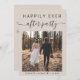 Elegante elopemento esticado ou pequeno anúncio de casamento e convite de recepção. A frente apresenta sua foto de casamento e "Feliz Festa Depois" em uma simples tipografia moderna e uma guião gráfica com pestanas. Em sua foto, adicione seus primeiros nomes e data de casamento ou recepção. No verso, personalize seus detalhes e adicione seus nomes em um script semelhante a assinatura.