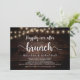 Linda alegria, desde a festa de Brunch, Anúncio de Elopemento de Casamento/Cartão de Convite, em Madeira de fazenda Rústica, design de Luzes de Corda. Isto é perfeito para a sua recepção de casamento e festa de celebração de posto. Adicione seus detalhes em fontes / letras correspondentes. #TeeshaDerrick