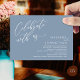 Elegantemente anuncie sua alegria para sempre com nosso moderno e empoeirado cartão de convite para celebração de elopementos de casamento, "Celebre conosco". Personalizado para casais continuando sua história de amor, este convite atinge um equilíbrio perfeito de sofisticação e charme, estabelecendo a cena de um evento inesquecível. Com um moderno design de roteiro contemporâneo, ele adiciona um toque de graça eterno ao seu dia especial. Projetado pelo talentoso TeeshaDerrick, este convite é uma expressão na moda do seu amor duradouro.