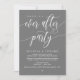 Marque o começo de sua eternidade com elegância usando nossa cinza negra contemporânea, chamada de celebração do elopemento de casamento, "Feliz Sempre Depois da Festa". Perfeito para os casais estendendo sua ocasião alegre, este convite exude sofisticação com uma sugestão de brincadeira, definindo o palco para um janto/almoço/evento de almoço memorável. Adorado com um tema design de roteiro moderno de eterno, ele adiciona um toque de encanto refinado às suas festividades. Feito por TeeshaDerrick, este convite promete capturar maravilhosamente sua história de amor.