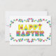 Felz pascoa. Convites de festas alegres, bonitos da páscoa. A palavra feliz está em um amarelo animador brilhante, e a páscoa da palavra está em um arco-íris da cor. Ambos são polvilhados com as flores. Customizável, você pode personalizar o texto em nosso modelo fácil de usar. Você pode mudar a cor do fundo se você gostaria, apenas vai personalizar. Queira isto ou um design similar em um outro artigo? Visite minha loja de Sensato.