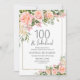 Convites Feminine Peach | Rosas Rosa Floral 100º Aniversári