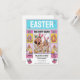 Cor da água do ovo felz pascoa Scandi, bonita, com uma foto em forma de ovo, com ovos pintados à mão, orelhas de coelho cômico e flores silvestres florescentes em tons suaves!