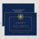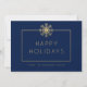 É fácil enviar desejos de feriado aos seus clientes com este elegante cartão de feriado corporativo. Este moderno design de cartões de visita apresenta uma cor de fundo azul marinho escura com um floco de neve solteiro em uma tonalidade dourada. Este modelo de cartão de convite simples oferece um marcador de posição para o logotipo da sua empresa, bem como uma mensagem personalizada para seus clientes na parte traseira do cartão! Para alterar a cor do plano de fundo ou adicionar uma foto e para obter mais opções de personalização, selecione a opção "Personalizar".