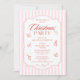 Os convites do Elegante Corporate Christmas Party Holiday Party Invtions apresentam elementos simples e vermelhos de Natal num fundo listrado cor-de-rosa e branco com o texto "Christmas Party" (Festa de Natal) em tipografia elegante e vermelha de escrita de caligrafia. Na moda, tendências e chic para o seu Partido de Feriados corporativo. Criado pelo Evco Studio www.zazzle.com/store/evcostudio