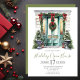 Este convite à Casa Aberta de Feriado da Porta Frente, com uma porta frontal decorada de forma festiva, com grampos de pinheiro, potes de pinheiro e arcos vermelhos seria perfeito para convidar amigos e família para uma casa aberta de férias. Os modelos são muito fáceis de usar e em segundos você pode ver seus convites fabulosos.