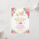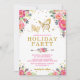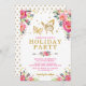 Convite temático feminino para borboletas apresentando uma ilustração maravilhosa de uma pincelada de aquarela e flores rosa quentes e um par de intrincadas borboletas de ouro