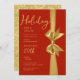 Convites Feriado de Natal Aberto Casa Dourada Fita Vermelha