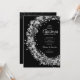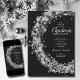 Círculos prateados, estrelas e pontos sobre fundo preto, suas informações sobre festas estão em cartazes chic nesses convites para festas de Natal. CORRESPONDENDO a itens na nossa loja.