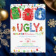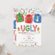 Feliz e Convite de festas de Natal brilhante e doce, com suéteres feios e luzes de Natal coloridas. Personalize-o hoje com os detalhes do seu partido, basta pressionar o botão personalizar para reorganizar e formatar o estilo e a posição do texto. (c) O feliz Cat Studio.
