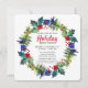 Este design de feriados apresenta uma camada floral de cor d'água de árvores sagradas e de Natal em volta de suas informações de convite da Holiday Open House sobre um fundo branco. No verso está um vermelho festivo. Edite o texto nas caixas de texto fornecidas para personalizar sua festa de Natal. #natristmas #feriados #sazonal #festivo #aquarela #floral #christmastree #holly #tree #blossoms #party #elegant #na moda #moderno #trendy #wreath #red #green #white #blue #personalizado #personalizado #diy #doitself #home #openhouse #christmasparty #celebra #design