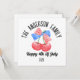 Adicione um toque festivo às suas comemorações de 4 de julho e reunião familiar/ A design apresenta uma bela bandeira americana dos EUA, com vermelho branco e azul, Isto é perfeito para abençoar seus amigos no dia 4 de julho! O destaque? Um recurso personalizado de nome da família! Adicione seu nome de família ao design, como "A Família Smith", criando um cartão de feriado único e ponderado que é realmente seu.