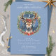 Feriado de inverno, Feriado Vermelho Berries, Convite de Natal com fundo azul empoeirado e costas escuras e azuis. Feliz Solstício de inverno! Celebre a mais longa e mágica noite do ano com este belo design de Natal Feriado de inverno Solstício. Este belo design de aquarela moderno apresenta uma coroa verde, cervo com galhos, estrelas douradas e lua azul crescente, galhos, velas vermelhas com chama brilhante e pontos metafísicos de cristal de ouro esotérico. Texto pronto para personalizar com suas informações.