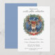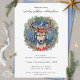 Feriado de inverno, Feriado Vermelho Berries, Convite de Natal com fundo branco e verso azul empoeirado. Feliz Solstício de inverno! Celebre a mais longa e mágica noite do ano com este belo design de Natal Feriado de inverno Solstício. Este belo design de aquarela moderno apresenta uma coroa verde, cervo com galhos, estrelas douradas e lua azul crescente, galhos, velas vermelhas com chama brilhante e pontos metafísicos de cristal de ouro esotérico. Texto pronto para personalizar com suas informações.